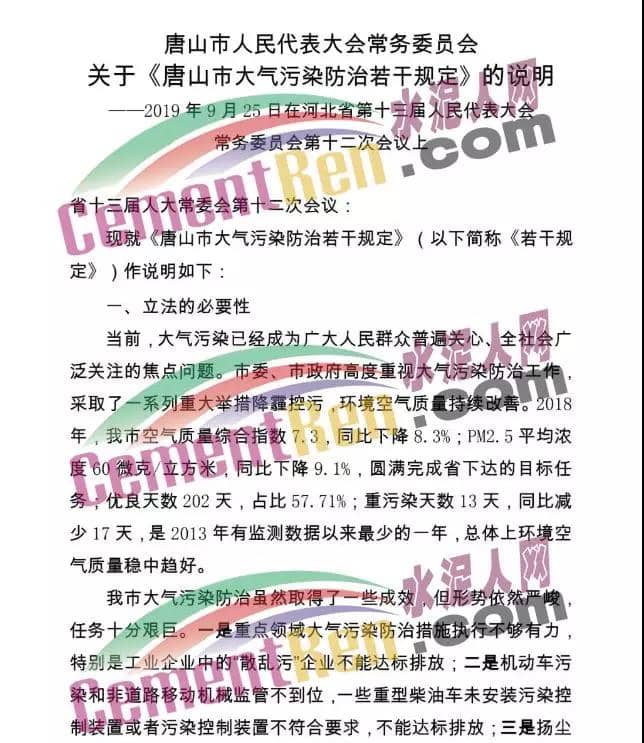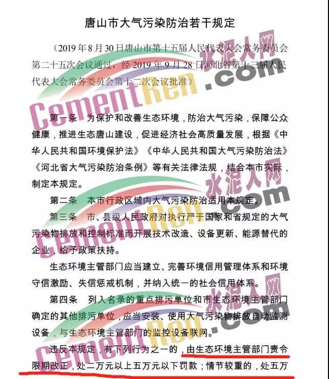 據(jù)水泥人網(wǎng)消息,近日,唐山市第十五屆人民代表大會(huì)常務(wù)委員會(huì)發(fā)布《公告》稱(chēng),《唐山市大氣污染防治若干規(guī)定》已于2019年8月30日唐山市第十五屆人民代表大會(huì)常務(wù)委員會(huì)第二十五次會(huì)議通過(guò),經(jīng)河北省第十三屆人民代表大會(huì)常務(wù)委員會(huì)第十二次會(huì)議于2019年9月28日批準(zhǔn),自2019年11月1日起施行?! ≡撘?guī)定稱(chēng):列入名錄的重點(diǎn)排污單位和市生態(tài)環(huán)境主管部門(mén)確定的其它排污單位,應(yīng)當(dāng)安裝、使用大氣污染排放自動(dòng)監(jiān)測(cè)設(shè)備、與生態(tài)環(huán)境主管部門(mén)的監(jiān)控聯(lián)網(wǎng)?! ∵`反本規(guī)定,有下列行為之一的,由生態(tài)環(huán)境主管部門(mén) 責(zé)令限期改正,處二萬(wàn)元以上五萬(wàn)元以下罰款;情節(jié)較重的,處五萬(wàn)元以上十萬(wàn)元以下罰款;情節(jié)嚴(yán)重的,處十萬(wàn)以上二十萬(wàn)以下罰款;拒不改正的,責(zé)令停產(chǎn)整治;構(gòu)成犯罪的,依法追究刑事責(zé)任: 一、未按照規(guī)定安裝、使用大所占污染排放自動(dòng)監(jiān)測(cè)設(shè)備或者未按照規(guī)定與生態(tài)環(huán)境主管部門(mén)的監(jiān)控設(shè)備聯(lián)網(wǎng),并保證監(jiān)測(cè)設(shè)備常運(yùn)行的; 二、、自動(dòng)監(jiān)測(cè)設(shè)備因故障不能正常動(dòng)行,排污單位未按照規(guī)定向生態(tài)環(huán)境主管部門(mén)報(bào)告的; 三、自動(dòng)監(jiān)測(cè)設(shè)備因故障不能正常運(yùn)行,排污單位未按照規(guī)定報(bào)送人工監(jiān)測(cè)數(shù)據(jù)的; 四、侵占、破壞、損毀或者擅自移動(dòng)、改變、拆除、閑置大氣污染排放自動(dòng)監(jiān)測(cè); 五、篡改、偽造大氣污染自監(jiān)測(cè)數(shù)據(jù)的; 六、未按照規(guī)定對(duì)所排放的工業(yè)廢氣和有毒有害大氣污染物進(jìn)行監(jiān)測(cè)并保存原始監(jiān)測(cè)記錄。 原文如下: