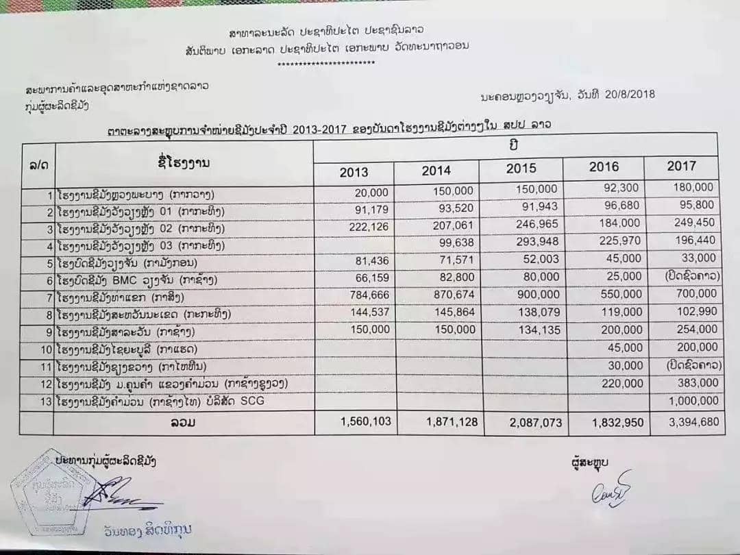 根據(jù)2018年統(tǒng)計(jì)(來(lái)自水泥生產(chǎn)商集團(tuán)的信息),老撾在全國(guó)范圍內(nèi)共有13個(gè)水泥廠(chǎng),自2013年至2015年,共有9個(gè)廠(chǎng)有生產(chǎn)和銷(xiāo)售活動(dòng)。