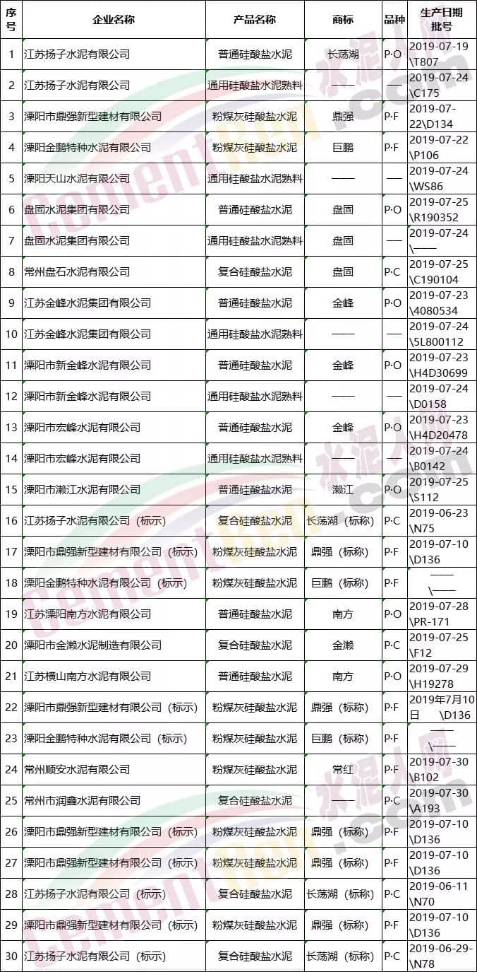 日前,常州市市場監(jiān)督管理局發(fā)布《2019年度常州市水泥產(chǎn)品質(zhì)量市級監(jiān)督抽查結(jié)果的通報》稱根據(jù)《中華人民共和國產(chǎn)品質(zhì)量法》《中華人民共和國政府信息公開條例》和《產(chǎn)品質(zhì)量監(jiān)督抽查管理辦法》等規(guī)定,常州市市場監(jiān)督管理局委托溧陽市市場綜合檢驗檢測中心,對常州市生產(chǎn)企業(yè)生產(chǎn)的水泥產(chǎn)品進(jìn)行了質(zhì)量監(jiān)督抽查,共抽查產(chǎn)品30批次,合格30批次,合格率100%。