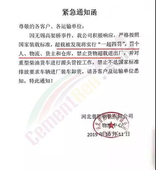 同時,相關(guān)物流運(yùn)輸企業(yè)及部分個體運(yùn)輸人員通知業(yè)主和客戶由于無錫“特殊事件”即日起運(yùn)費(fèi)上調(diào)30元/噸,每車限拉35噸。