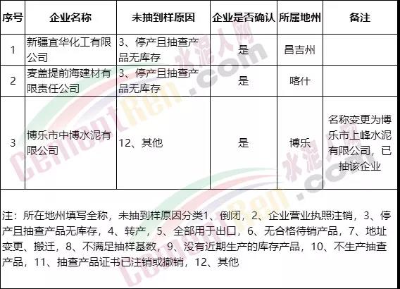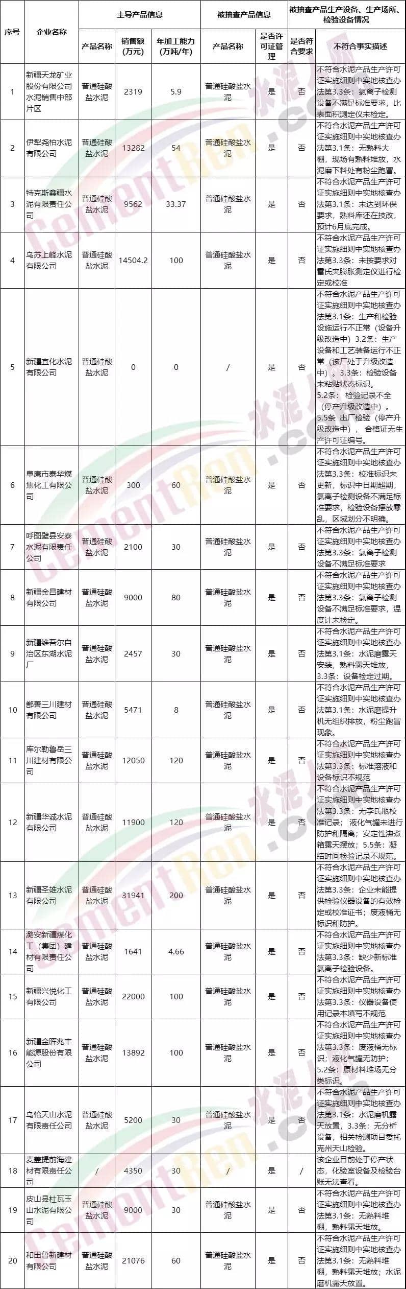 2019年自治區(qū)水泥產(chǎn)品質(zhì)量監(jiān)督抽查未抽樣企業(yè)名單不僅新疆地區(qū),近一年,已經(jīng)多個(gè)區(qū)域市場(chǎng)監(jiān)督管理局通報(bào)抽檢不合格品名單詳情如下: