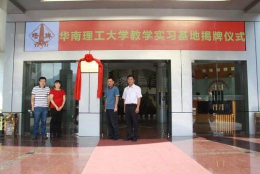 10月22日, 塔牌集團在總部大樓舉行華南理工大學(xué)教學(xué)實習(xí)基地揭牌儀式,塔牌集團總經(jīng)理何坤皇,黨委書記、工會主席李斌,華南理工大學(xué)材料學(xué)院副院長殷素紅教授、輔導(dǎo)員李儉老師共同為“華南理工大學(xué)教學(xué)實習(xí)基地”揭牌。塔牌集團黨委副書記、常務(wù)副總經(jīng)理徐政雄,副總經(jīng)理丘增海、丘偉軍,各級管理技術(shù)干部和華工畢業(yè)實習(xí)生等參加了揭牌儀式。