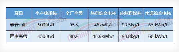 對(duì)比世界低能耗示范線(xiàn)生產(chǎn)線(xiàn)泰安中聯(lián)日產(chǎn)5000噸新型干法水泥熟料生產(chǎn)線(xiàn),其智能化程度和能耗指標(biāo)有相似之處。