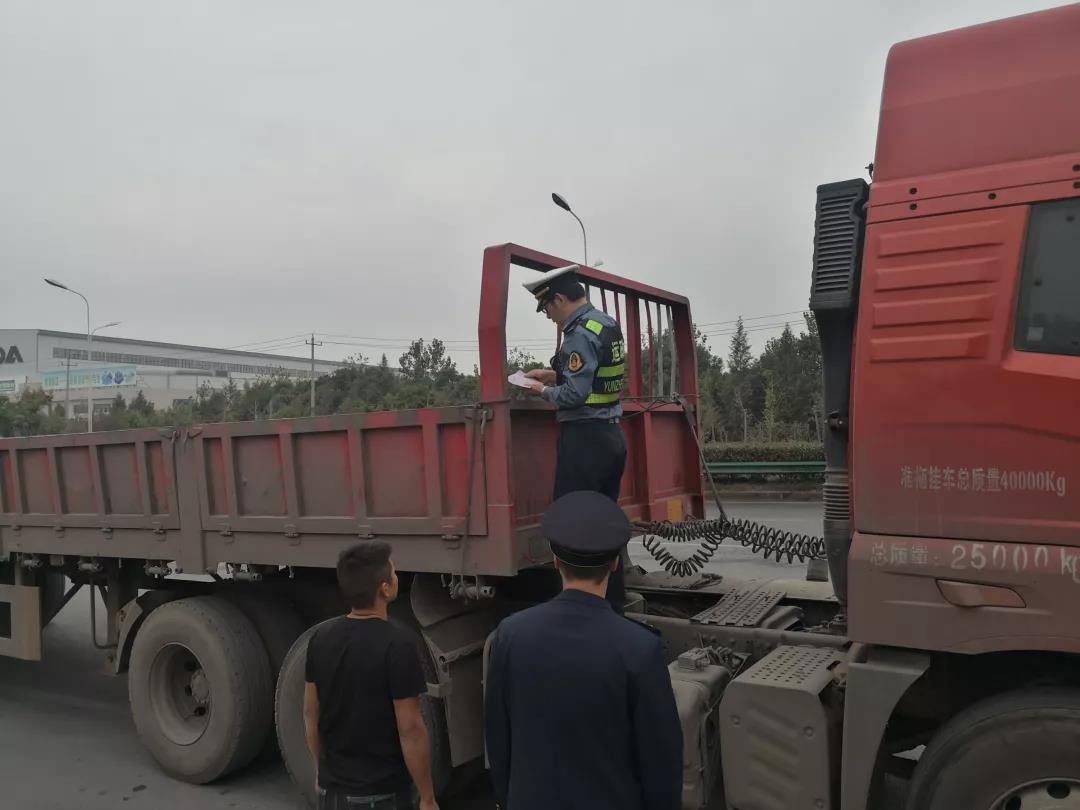 執(zhí)法人員首先在采石外橋處設點,對途徑馬鞍山市的各類貨運車輛逐臺進行檢查。