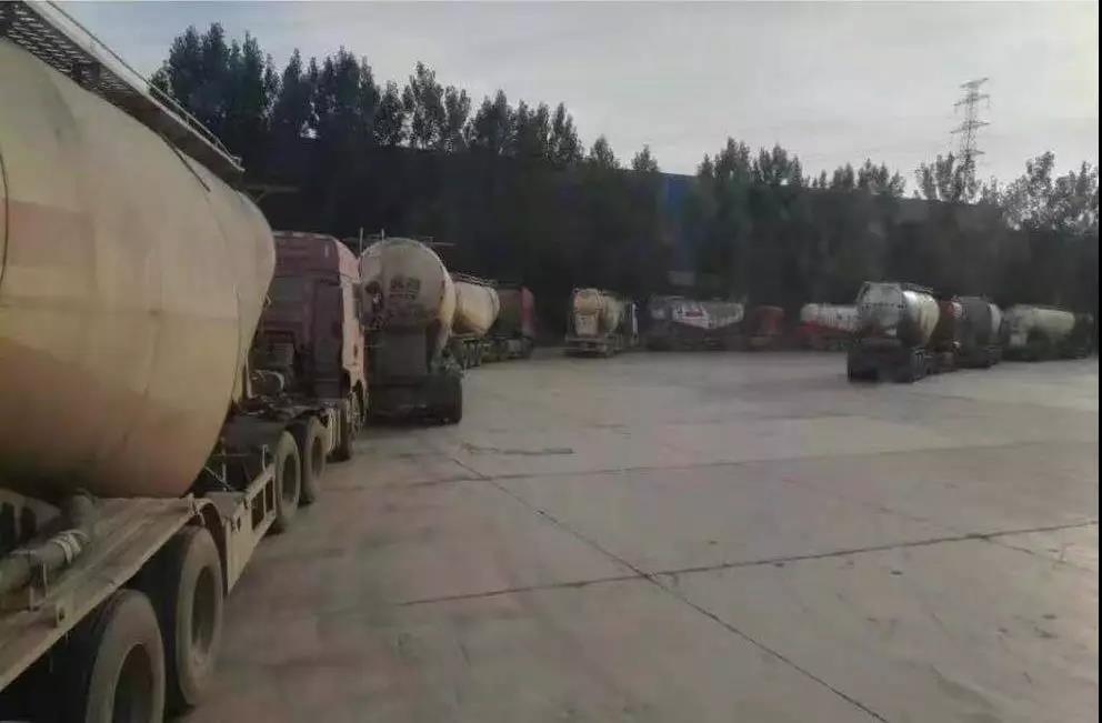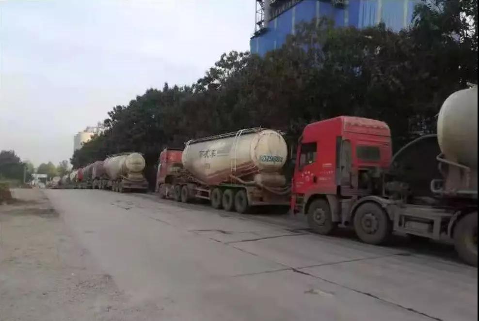 (某大型水泥廠門口排隊(duì)等著進(jìn)廠的罐車)