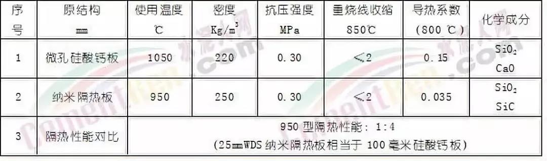 一、 新型隔熱材料的優(yōu)異隔熱性能作為水泥燒成系統(tǒng)常用的隔熱材料微孔硅酸鈣板,其隔熱性能比新型的納米隔熱材料,隔熱性能差了許多。納米隔熱材料是采用納米新技術(shù),添加了獨(dú)特的反紅外輻射材料,采取特殊的工藝生產(chǎn)出來的納米級微孔隔熱材料,相比較于傳統(tǒng)陶瓷纖維和微孔硅酸鈣板這類微米級氣孔隔熱材料,納米隔熱材料的氣孔在20納米左右,這是導(dǎo)致其導(dǎo)熱系數(shù)成為迄今為止最低的固體類隔熱材料,詳細(xì)的隔熱性能對比見表—1。