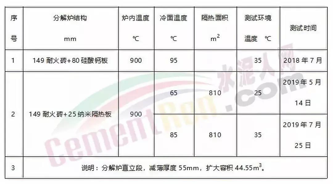 分解爐隔熱結(jié)構(gòu)隔熱效果對比表—2