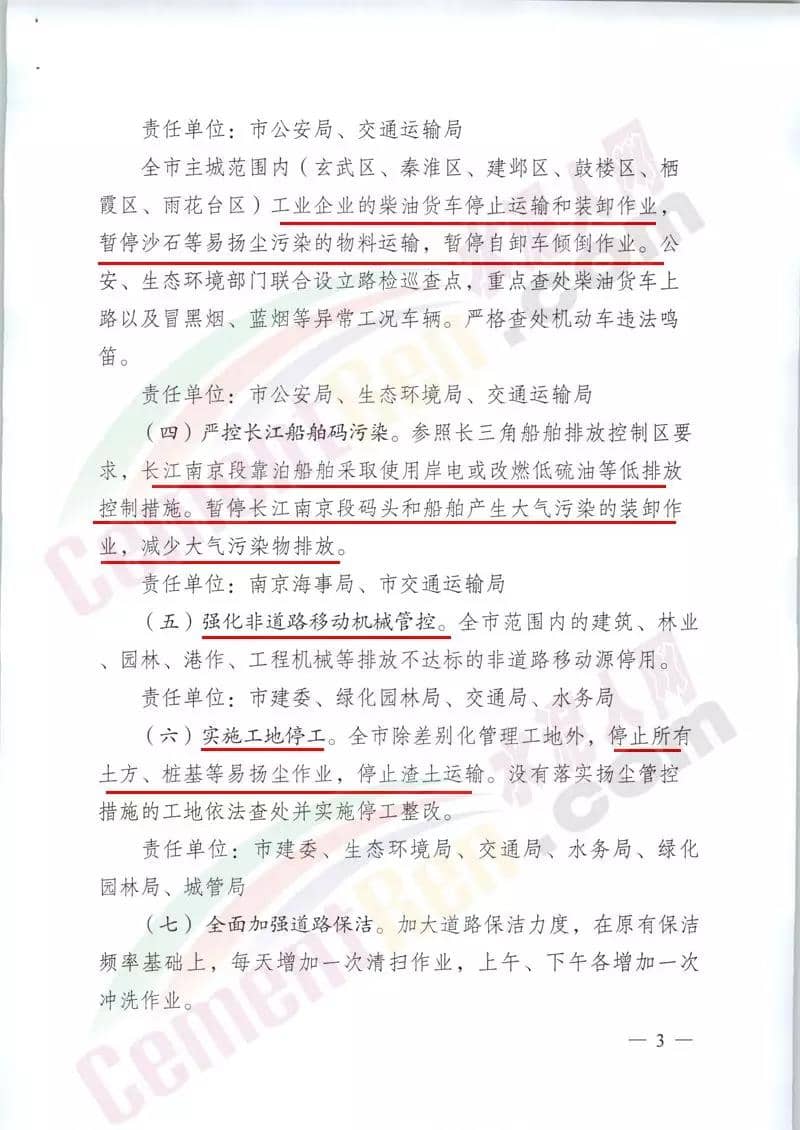 據(jù)水泥人網(wǎng)了解,日前南京市環(huán)境保護(hù)部門連發(fā)兩文要求列入全市秋冬應(yīng)急管控清單的1560家重點工業(yè)企業(yè)按照重污染天氣應(yīng)急預(yù)案橙色預(yù)警級別實施停限產(chǎn)。