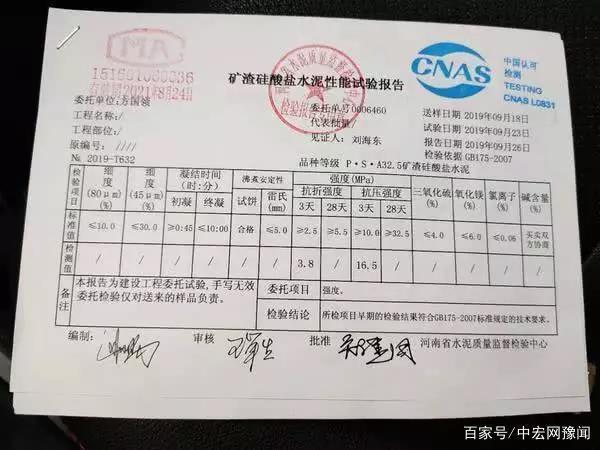 根據(jù)河南省水泥質(zhì)量監(jiān)督檢驗(yàn)中心出具的實(shí)驗(yàn)報(bào)告,送檢水泥樣本強(qiáng)度符合標(biāo)準(zhǔn)規(guī)定的技術(shù)要求。