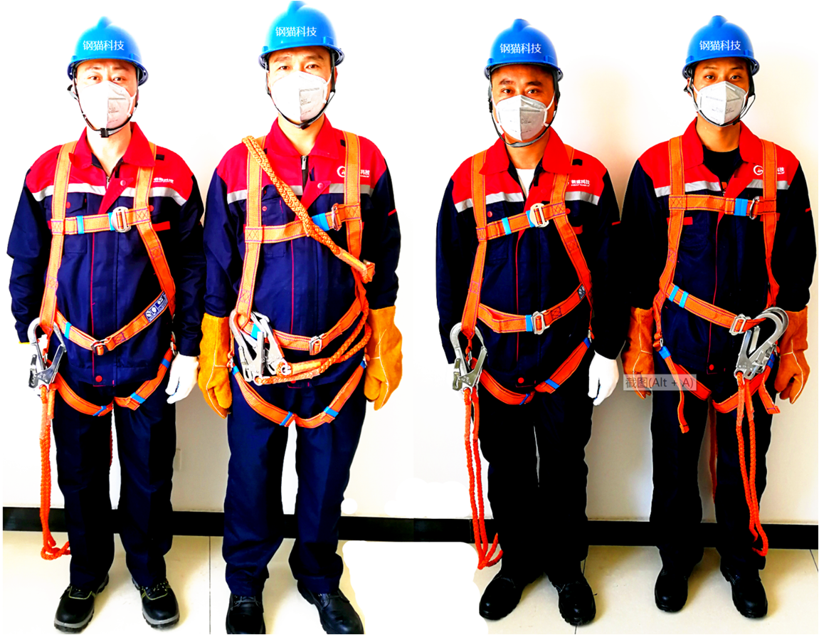 三、專業(yè)高效,提供標準化服務的精英團隊鋼貓科技的團隊施工人員都必須經(jīng)過專業(yè)技能培訓、施工安全培訓等專業(yè)培訓,取得高處作業(yè)證、安全員證等相關資質證件才能上崗施工,在工程項目期間也堅持貫徹“三會一表”制度,進一步加強員工安全意識,同時進行每日工作總結,為圓滿完成任務打下每一步堅實的基礎。鋼貓科技一直秉承三大原則:一、生命至上、安全第一;二、美麗工廠、環(huán)保為重;三、科技引領、高效快捷。