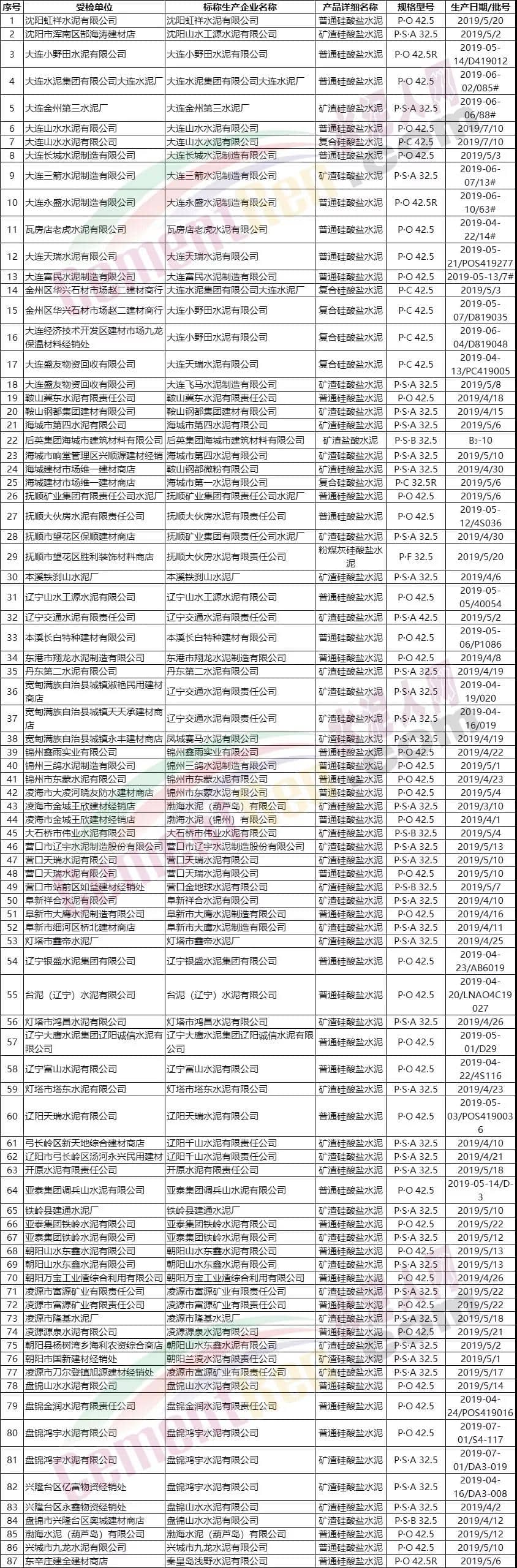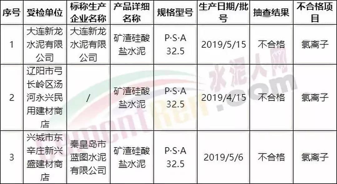 抽檢不合格三批次水泥