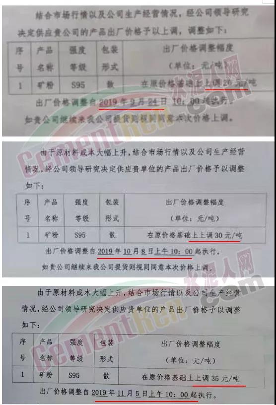 從9月下旬起,局部區(qū)域企業(yè)S95礦粉已經(jīng)三次發(fā)布調(diào)價通知,合計漲幅近100元,并且供貨緊張。