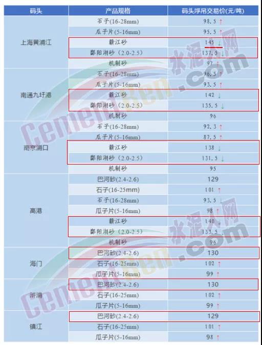 長江部分港口江砂已經(jīng)超過了100元/噸,其中上海黃浦江贛江砂碼頭浮吊交易價達到145元/噸。