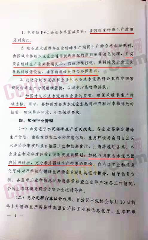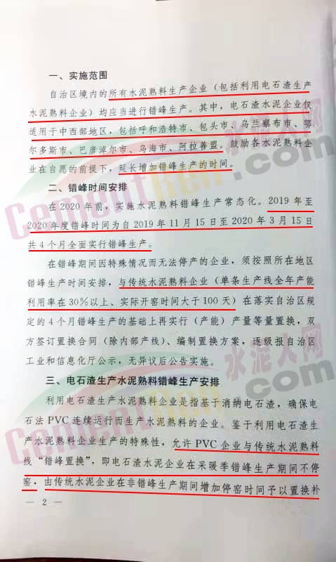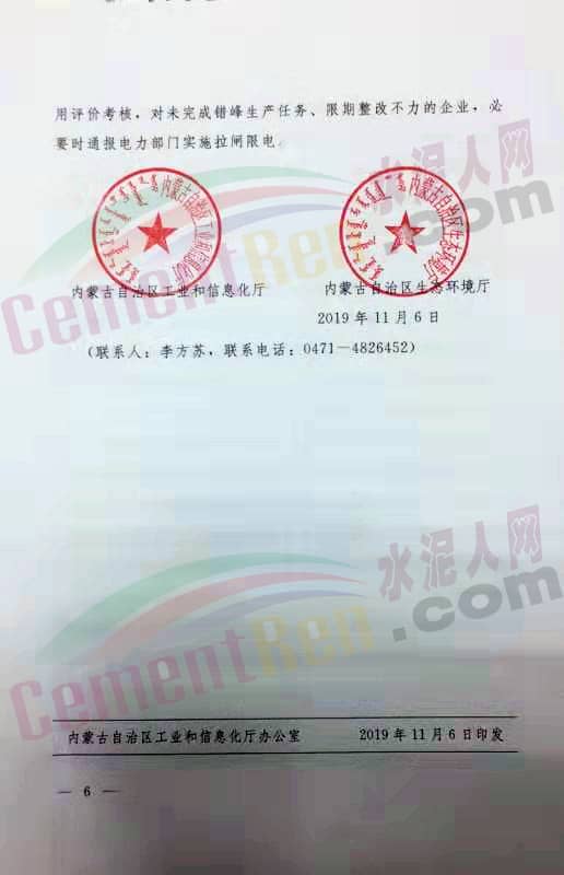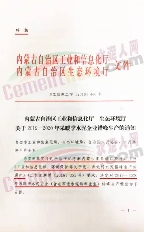 水泥人網(wǎng)消息:11月6日內(nèi)蒙古自治區(qū)工業(yè)和信息化廳、內(nèi)蒙古自治區(qū)生態(tài)環(huán)境廳發(fā)布了特急文件《關于2019-2020年采暖季水泥企業(yè)錯峰生產(chǎn)》,通知稱:為了貫徹國家領導人考察內(nèi)蒙古重要講話精神,按照《工業(yè)化和信息化部、環(huán)境保護部關于進一步做好水泥錯峰生產(chǎn)的通知》(工信部聯(lián)原【2016】351號)要求,決定對2019-2020年采暖季水泥企業(yè)(含電石渣水泥熟料企業(yè))錯峰生產(chǎn)做出如下安排。