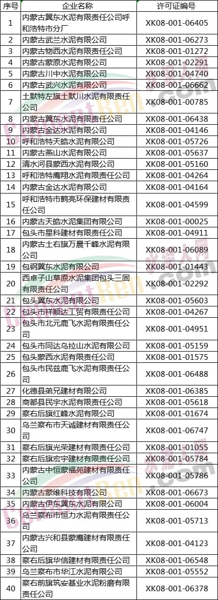 7個地區(qū)部分水泥企業(yè)名單如下: