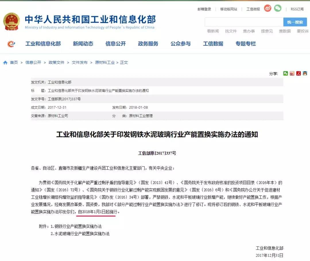 通知提到水泥行業(yè)單條生產(chǎn)線規(guī)模達到2500t/d及以上,可比熟料綜合標準煤耗低于103千克標煤/噸,可比熟料綜合電耗低于56千瓦時/噸,可比熟料綜合能耗低于110千克標煤/噸。熟料產(chǎn)能置換按照1:1.5實行減量置換。通知原文如下: