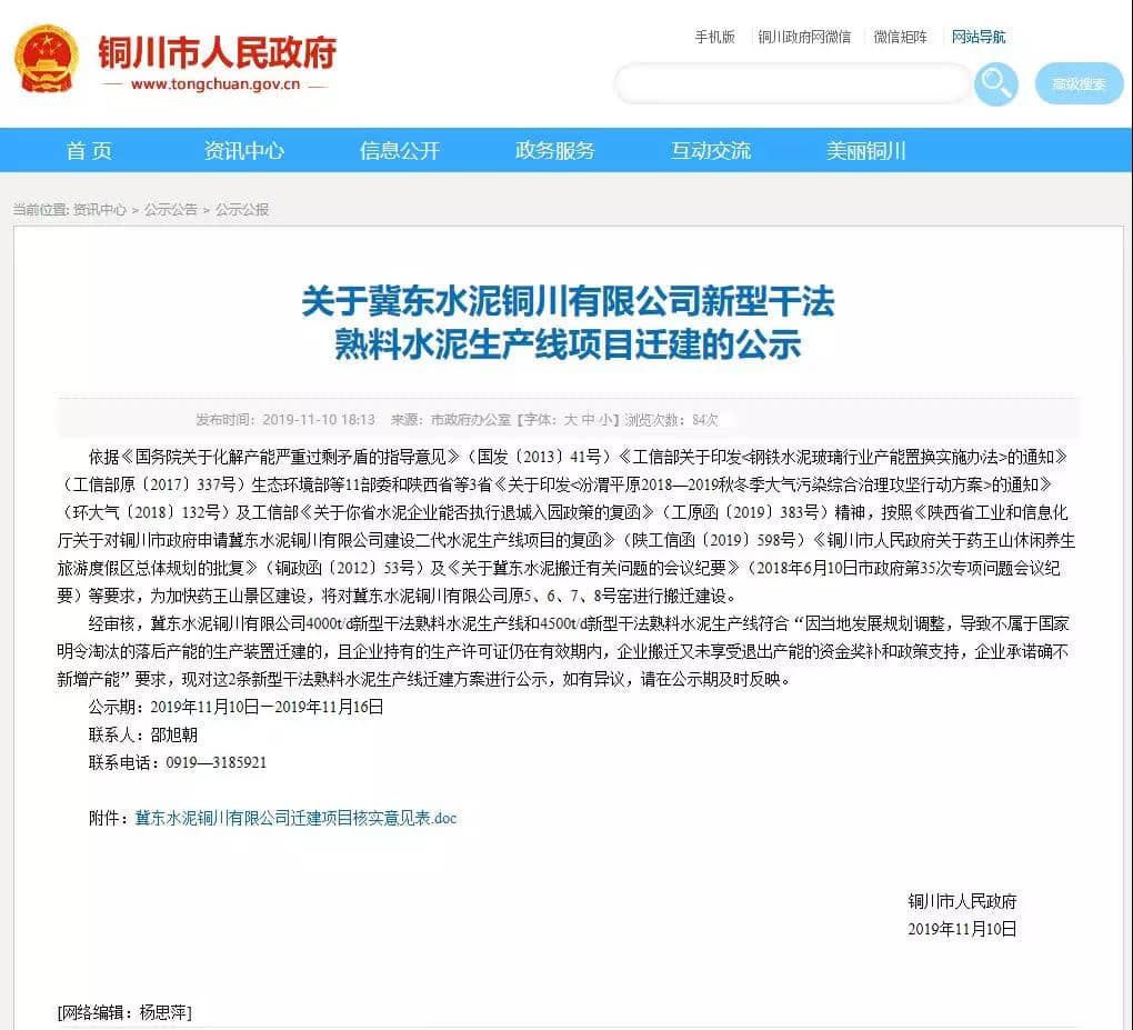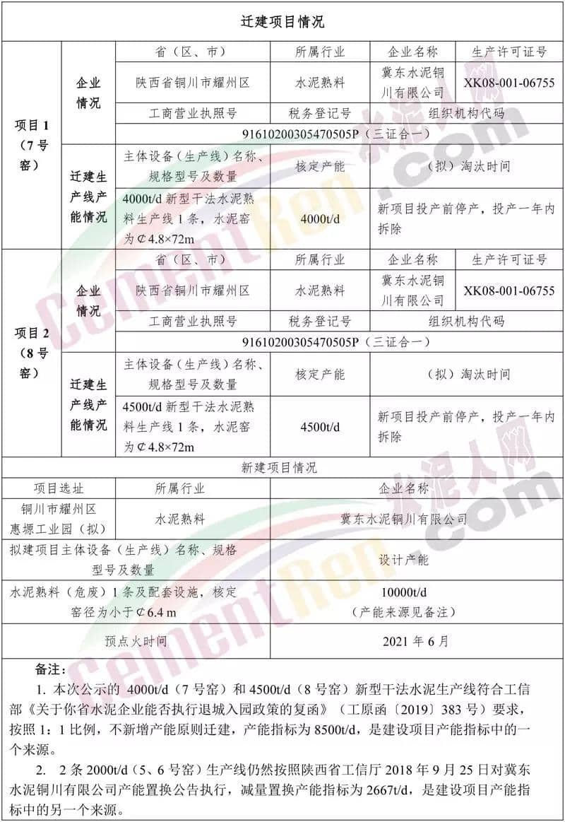 經(jīng)審核,冀東水泥銅川有限公司4000t/d新型干法熟料水泥生產(chǎn)線(xiàn)和4500t/d新型干法熟料水泥生產(chǎn)線(xiàn)符合“因當(dāng)?shù)匕l(fā)展規(guī)劃調(diào)整,導(dǎo)致不屬于國(guó)家明令淘汰的落后產(chǎn)能的生產(chǎn)裝置遷建的,且企業(yè)持有的生產(chǎn)許可證仍在有效期內(nèi),企業(yè)搬遷又未享受退出產(chǎn)能的資金獎(jiǎng)補(bǔ)和政策支持,企業(yè)承諾確不新增產(chǎn)能”要求。公示原文如下: