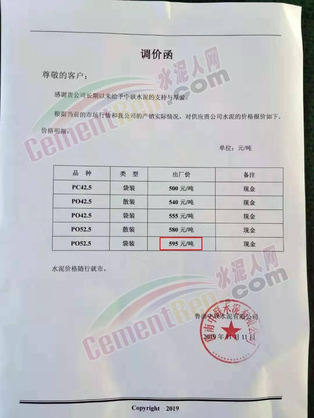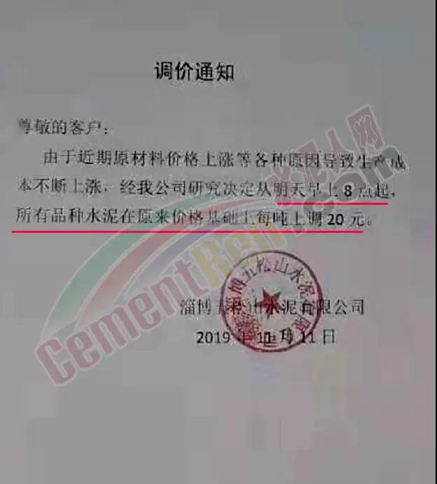 淄博魯中水泥有限公司調(diào)價(jià)函稱,根據(jù)當(dāng)前水