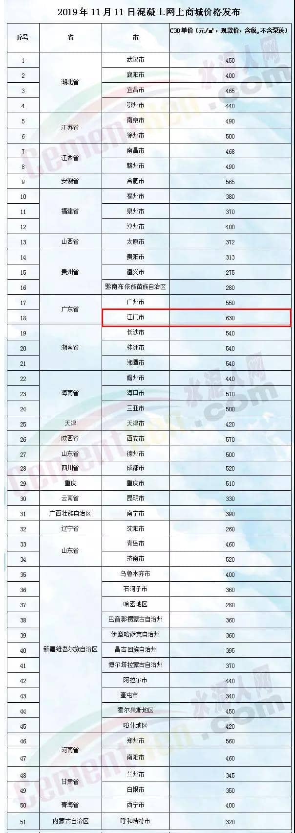 11月11日混凝土行業(yè)最大上市公司——中建西部建設(shè)在自己的電商平臺(tái)發(fā)布了最新的混凝土報(bào)價(jià)。