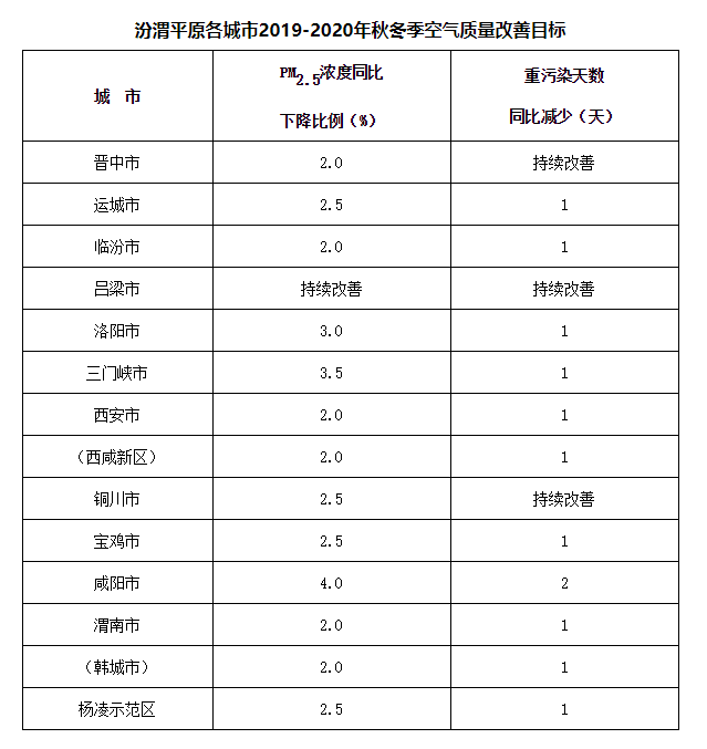 附件:1.汾渭平原各城市2019-2020年秋冬季空氣質量改善目標