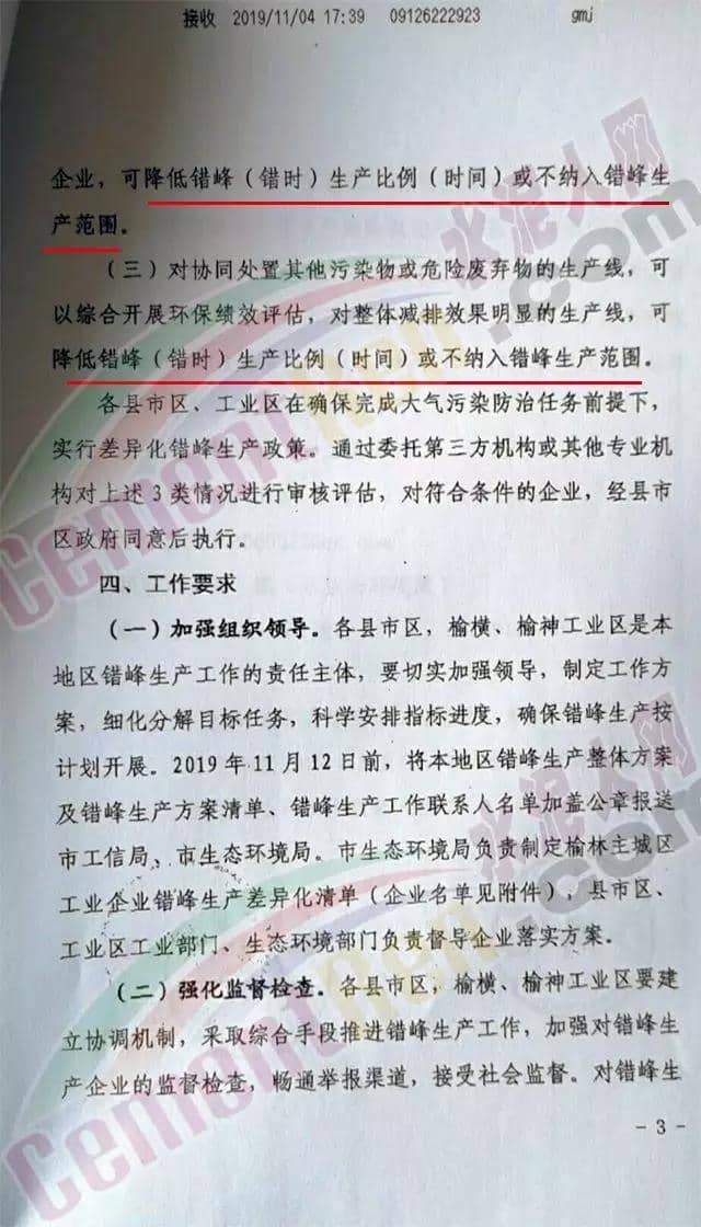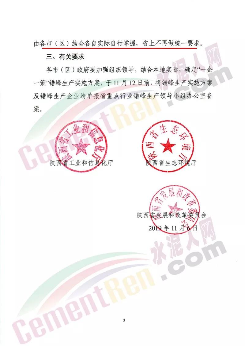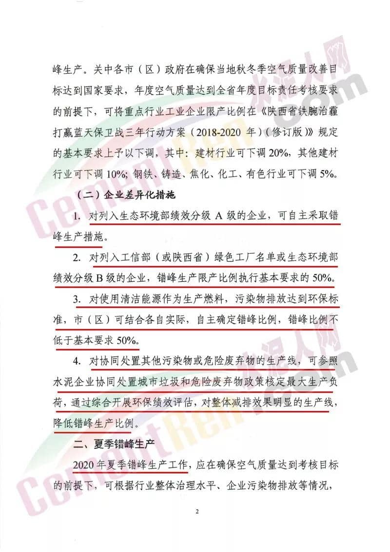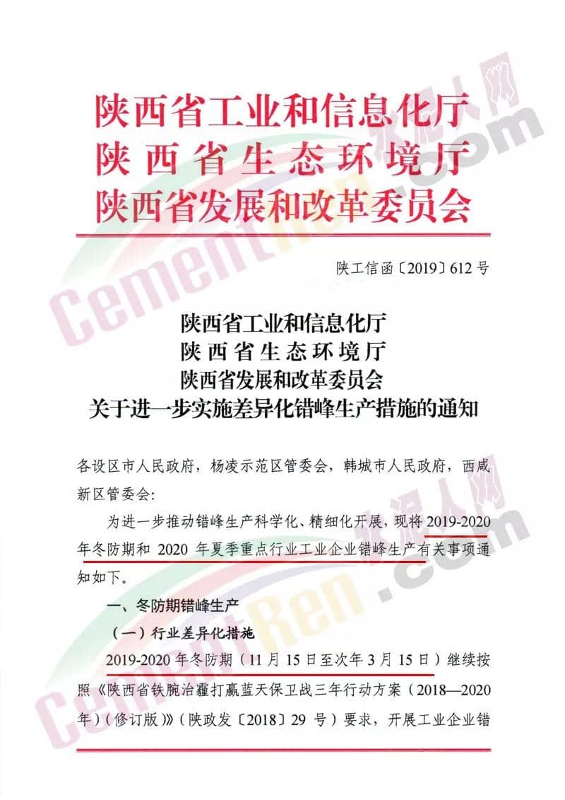 (一)對滿足環(huán)保排放要求且污染物排放總量小、對穩(wěn)增長、穩(wěn)就業(yè)、穩(wěn)外貿(mào)等影響大的生產(chǎn)工序,可適度減少錯峰?! ?二)對承擔(dān)供氣、供熱等民生任務(wù)的保障類企業(yè),可根據(jù)供氣、供熱需求優(yōu)化錯峰生產(chǎn)比例?! ?三)完成治理任務(wù)且列入工業(yè)和信息化部綠色工廠示范的企業(yè)、污染物排放達到超低排放標(biāo)準(zhǔn)(沒有超低排放標(biāo)準(zhǔn)的行業(yè),污染物排放低于行業(yè)特別排放限值20%以上)且物料運輸采用鐵路運輸或其他清潔運輸方式的企業(yè)(其中,焦化企業(yè)必須采取干法熄焦)、滿足生態(tài)環(huán)境部《關(guān)于加強重污染天氣應(yīng)對夯實應(yīng)急減排措施的指導(dǎo)意見》要求的A級企業(yè),可列入豁免清單,不參與錯峰?! ?四)對產(chǎn)業(yè)結(jié)構(gòu)指導(dǎo)目錄中限制類和環(huán)??冃Р畹囊岣咤e峰限產(chǎn)比例或?qū)嵤┩.a(chǎn)。 (五)錯峰生產(chǎn)要與重污染天氣應(yīng)急減排措施相銜接,保證重污染天氣應(yīng)急減排需要,對于重污染天氣應(yīng)急預(yù)警不可臨時中斷的生產(chǎn)線或生產(chǎn)工序,減排量可通過提前采取錯峰生產(chǎn)措施予以落實。各市要根據(jù)以上規(guī)定和錯峰生產(chǎn)重點領(lǐng)域進一步完善落實錯峰生產(chǎn)方案?! ?jù)水泥人網(wǎng)了解,山西區(qū)域多個城市此前都發(fā)布了錯峰生產(chǎn)計劃,要求轄區(qū)內(nèi)水泥企業(yè)從 2019年10月1日00時至2020年3月31日24時實施錯峰生產(chǎn)。水泥企業(yè)完成無組織治理和特別排放限值改造的限產(chǎn)50%,未完成的停產(chǎn)整治。附山西、陜西區(qū)域水泥熟料生企業(yè)名單: