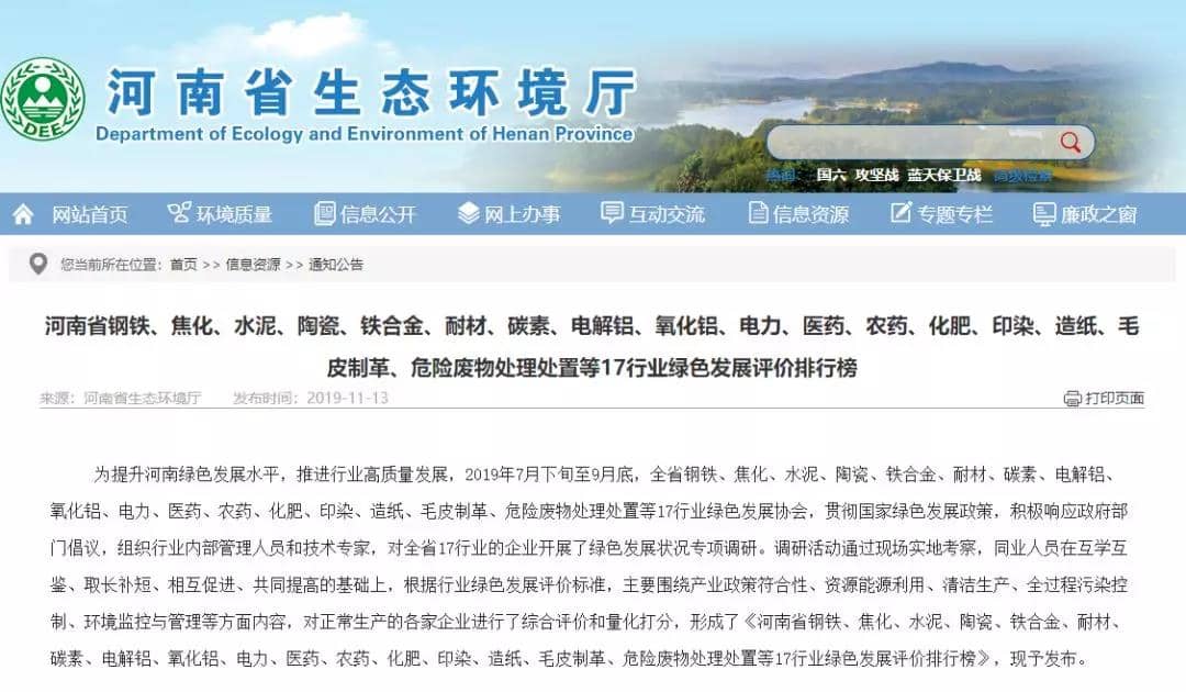 河南省2019年度綠色環(huán)保引領(lǐng)企業(yè)名單