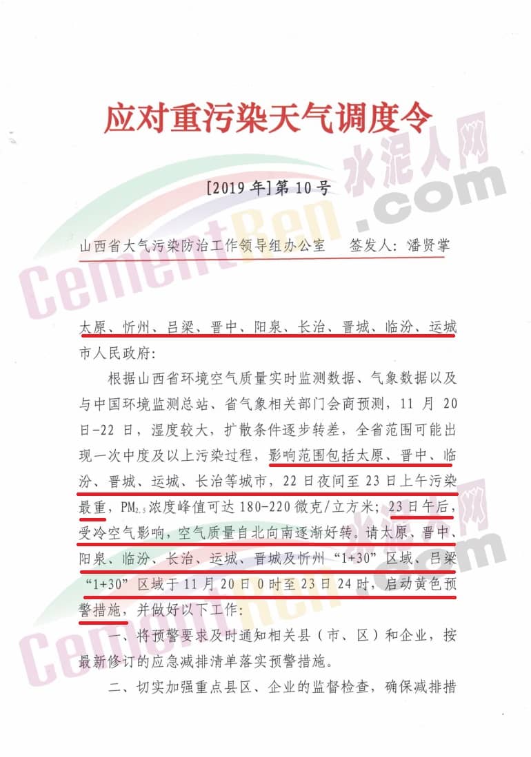 水泥人網(wǎng)消息:日前,山西省長(zhǎng)治市、太原、忻州、晉中、陽(yáng)泉、晉城、臨汾運(yùn)城,河南省南陽(yáng)、三門(mén)峽,河北省唐山市相繼發(fā)布了重污染天氣橙色預(yù)警(二級(jí))響應(yīng)通知。