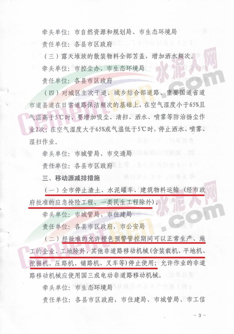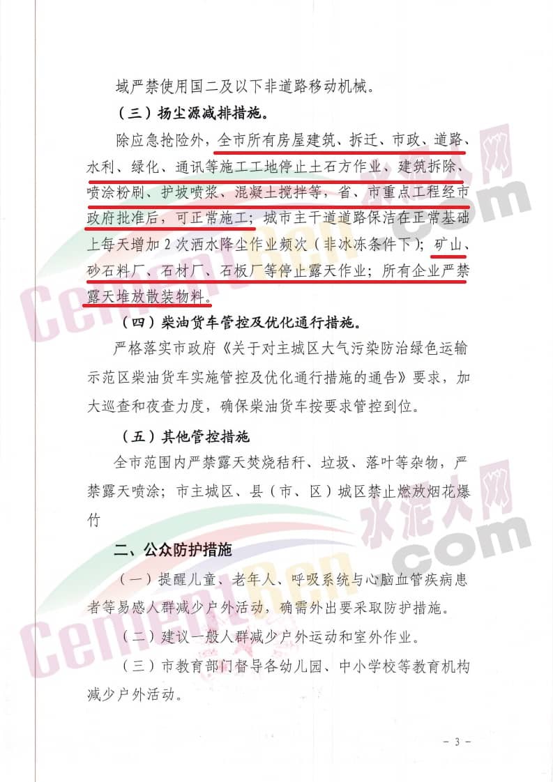 工業(yè)企業(yè)必須嚴(yán)格落實(shí)新修訂的應(yīng)急減排措施清單中停限產(chǎn)措施,建材行業(yè)全部停產(chǎn)(包括水泥行業(yè)、采石采砂行業(yè)等),涉保障民生供熱任務(wù)的工業(yè)企業(yè)嚴(yán)格執(zhí)行以熱定產(chǎn)、以氣定產(chǎn);供應(yīng)重點(diǎn)工程物流的工業(yè)企業(yè)嚴(yán)格按照《關(guān)于重污染天氣允許重點(diǎn)工程項(xiàng)目施工建設(shè)的復(fù)函》執(zhí)行以量定產(chǎn)要求。