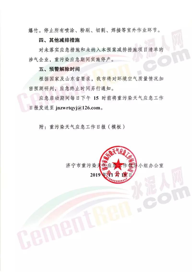 按照提前預(yù)警的原則,建議濟(jì)南、淄博 、棗莊、東營、維坊、濟(jì)寧、泰安、日照、臨沂、德州、聊城、濱州、荷澤13市根據(jù)空氣質(zhì)量預(yù)測會商結(jié)果,于11月20日零時(shí)前發(fā)布預(yù)警,11月21日零時(shí)前應(yīng)動應(yīng)急響應(yīng)。預(yù)警期間對工業(yè)企業(yè)要按照最新修訂的應(yīng)急減排清單采取限產(chǎn)停產(chǎn)等減排措施;對建筑 工地等揚(yáng)塵源停止產(chǎn)能揚(yáng)塵環(huán)節(jié)的建筑施工作業(yè)及渣土運(yùn)輸;加強(qiáng)重型柴油貨車管控措施,最大限度減少上路運(yùn)輸行駛等。工函原文如下: