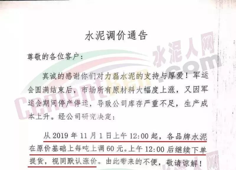 錦榮水泥自10月31日以來水泥價格連續(xù)上漲11次,其中從11月10日到11月18日,9天時間該企業(yè)連發(fā)了9張調(diào)價函。經(jīng)過11輪上漲,該企業(yè)P.O42.5水泥累計漲價高達(dá)300元/噸,目前P.O42.5散裝含票出廠價高達(dá)680元/噸,加上運費到位核心區(qū)域價格已突破700元/噸。 河南三門峽市澠池仰韶水泥廠自11月8日起連發(fā)三份漲價函,截止11月13日,澠池仰韶水泥42.5級散裝水泥出廠價為610元/噸,52.5級散裝水泥出廠價為710元/噸。近期河南區(qū)域水泥價格又出現(xiàn)持續(xù)暴跌現(xiàn)象,兩天就跌了150元/噸,而且近期還在向下調(diào)整,跌價空間幾乎把之前的漲幅全部抹平。這種大漲大跌的市場環(huán)境,是極為不正常的。福建區(qū)域粉磨站“沒米了”,漲30元/噸福建區(qū)域熟料供應(yīng)緊張,部分粉磨站企業(yè)通知無水泥可賣。某水泥粉磨企業(yè)負(fù)責(zé)人對水泥人網(wǎng)表示:“沒米了!” 福建區(qū)域企業(yè),一直都是從廣東及廣西采購熟料,近來枯水加上治超,熟料到位價格上漲。福建區(qū)域多家企業(yè)便隨之上調(diào)水泥價格,上調(diào)幅度30元/噸。天津漲價,拉開了京津冀區(qū)域的漲價的序幕21日區(qū)域主導(dǎo)企業(yè)集體上調(diào)水泥價格。北京金隅水泥經(jīng)貿(mào)有限公司天津分公司發(fā)調(diào)價通知,由于目前企業(yè)受環(huán)保錯峰、道路運輸治理等因素的影響,導(dǎo)致企業(yè)水泥庫存較低;同時,礦粉等原材料價格持續(xù)走高、京津冀東地區(qū)環(huán)保力度加大,環(huán)保投入增加,水泥生產(chǎn)成本大幅上漲。企業(yè)自11月21日8時起,PO42.5及以上規(guī)格散裝水泥產(chǎn)品出廠價格在原價格基礎(chǔ)上上調(diào)20元/噸。 陜西是兩輪漲價,共漲60元/噸,遭遇河南水泥車“搶購”本月15日前后陜西關(guān)中地區(qū)冀東,聲威,堯柏等多家主導(dǎo)企業(yè)通知上調(diào)水泥價格,漲幅30元/噸。18日前后大批河南水泥運輸車到陜西關(guān)中區(qū)域調(diào)運水泥,令區(qū)域內(nèi)庫存減少,部分企業(yè)再次上調(diào)30元/噸。一片漲勢之中唯貴州區(qū)域遭遇“寒冬”,水泥價格低到200元以下,甚至有局部區(qū)域出廠價 180元/噸左右。1200元~180元,1020元的差價,是水泥行業(yè)冰火兩重天的現(xiàn)狀。目前的水泥價格似乎已處在了“失控”邊緣。部分企業(yè)又開啟了大票模式,在今年斷供后又開售2020年的水泥期貨。與上年相比,華東上海周邊區(qū)域似乎較平靜。上年末,華東區(qū)域水泥價高,下游競價銷售,出現(xiàn)千元左右一噸的水泥。后隨著華南廣西區(qū)域熟料和水泥到位,價格才逐步趨于平穩(wěn)。今年1季度下游施工企業(yè)提前備貨,也為今年華東區(qū)域的市場穩(wěn)定提前做了“鋪墊”。另據(jù)消息稱,華東沿海區(qū)域今年以來一直有大企業(yè)采購進(jìn)口熟料到港,區(qū)域內(nèi)熟料供應(yīng)平穩(wěn),繼而水泥價格也處于穩(wěn)中有漲態(tài)勢。