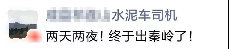 11月26下午14時(shí)左右,某水泥運(yùn)費(fèi)司機(jī)發(fā)朋友圈稱,兩天兩夜終于出了秦嶺。