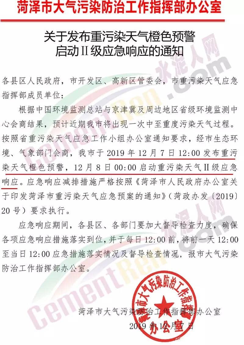 日前,水泥大省山東省濟(jì)寧市、荷澤市、東營市等區(qū)域發(fā)布重污染預(yù)警,同時(shí)啟動(dòng)應(yīng)急響應(yīng)措施。