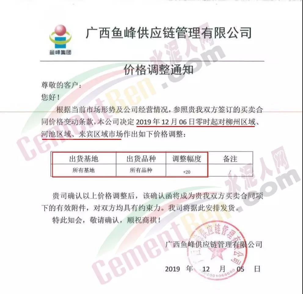 日前,廣西魚峰從應鏈管理有限公司發(fā)價格調(diào)整通知稱,根據(jù)當前市場形勢及公司經(jīng)營情況,決定 自12月6日零時起柳州區(qū)域、河池區(qū)域、來賓區(qū)域市場做出所有基地,所有品種上調(diào)20元/噸 。