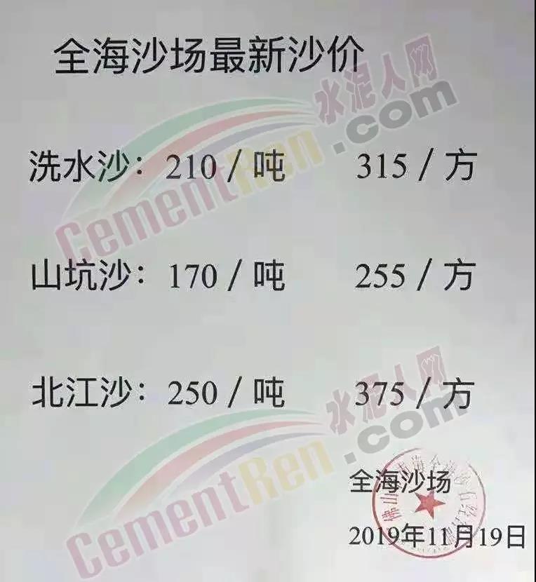 同期沙廠給出了最新的沙價。其中北江沙價格達到375元/方。