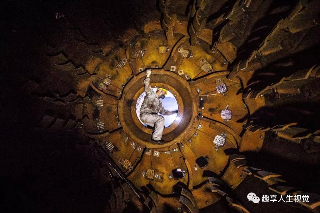 2019年2月25日常德南方水泥,煤磨巡檢工譙吉明從30cmx40cm方形孔鉆進(jìn)磨內(nèi)工作。