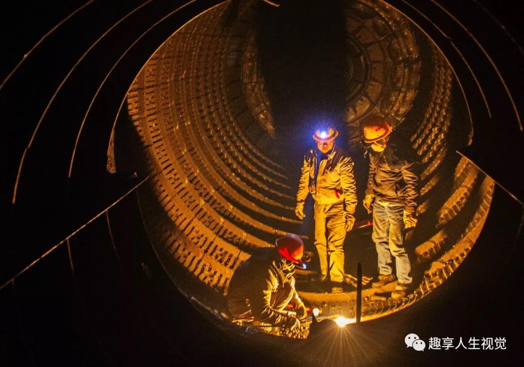2019年2月14日常德南方水泥,工段長(zhǎng)郭學(xué)松在磨機(jī)內(nèi)對(duì)焊接處進(jìn)行檢測(cè)。