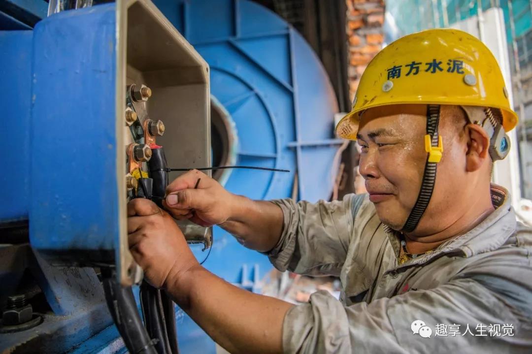 2019年7月16日常德南方水泥,電工楊勇在為檢修完畢的燃煤球磨機(jī)接通電源。