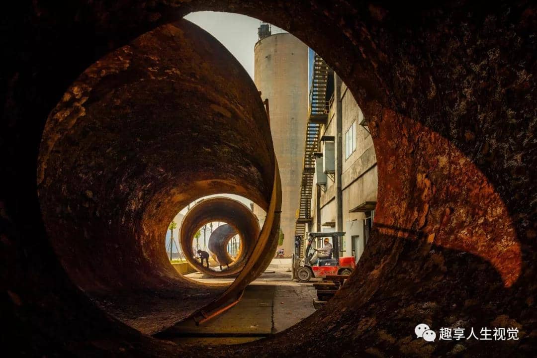 2019年8月25日常德南方水泥,工段長(zhǎng)郭學(xué)松在拆卸的舊煙管里切割可利用部件。