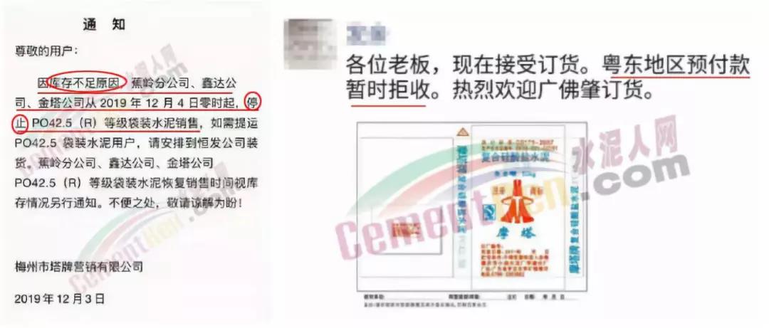 11月中旬,廣東某經銷商發(fā)通知稱,粵東地區(qū)預付款暫時拒收。提前給錢也沒水泥賣了!
