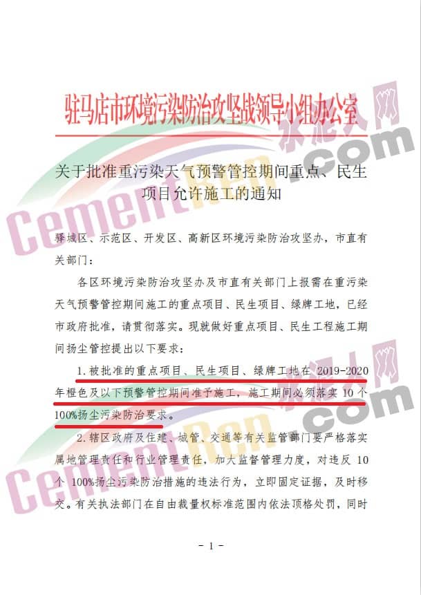 12月6日,河南省駐馬店市環(huán)境污染防治攻堅(jiān)戰(zhàn)領(lǐng)導(dǎo)小組辦公室發(fā)布了《關(guān)于批準(zhǔn)重污染天氣預(yù)警管控期間重點(diǎn)、民生項(xiàng)目允許施工的通知》稱,根據(jù)各區(qū)環(huán)境污染防治攻堅(jiān)辦及市有關(guān)部門報(bào)需在重污染天氣預(yù)警管控期間施工的重點(diǎn)項(xiàng)目、民生項(xiàng)目、綠牌工地,已經(jīng)在市政府批準(zhǔn),請貫徹落實(shí)。具體重點(diǎn)項(xiàng)目、民生工程施工期間揚(yáng)塵管控要求。文件全文如下: