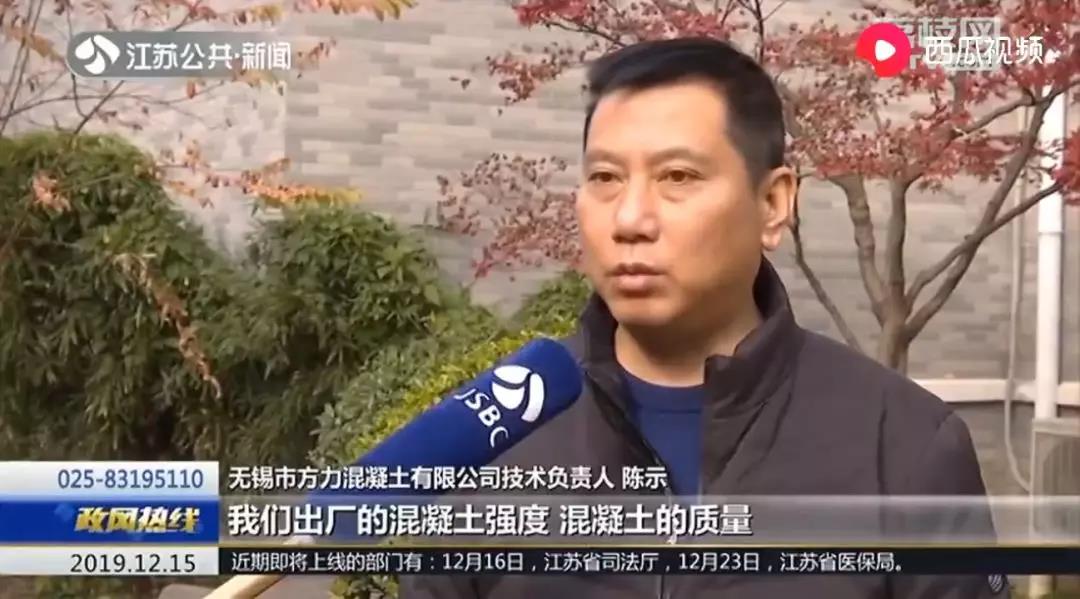 無錫市房力混凝土有限公司技術(shù)負責人陳示則表示,他們出廠的混凝土強度混凝土質(zhì)量肯定是沒有問題的。江蘇中博建設有限公司總經(jīng)理趙富民稱,廠家給出具了(承諾書)肯定沒問題,那事實上是沒問題嗎?