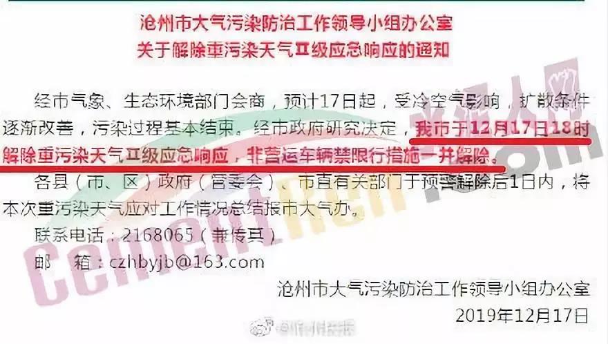 同期,滄州市大氣污染防治工作領(lǐng)導(dǎo)小組辦公室發(fā)布了《關(guān)于解除重污染天氣Ⅱ級應(yīng)急響應(yīng)的通知》稱,經(jīng)市氣象、生態(tài)環(huán)境部門會商,預(yù)計(jì)17日起,受冷空氣影響,擴(kuò)散條件逐漸改善,污染過程基本結(jié)束。經(jīng)市政府研究決定,滄州市于12月17日18時解除重污染天氣Ⅱ級應(yīng)急響應(yīng) ,非營運(yùn)車輛禁限行措施一并解除。各縣(市、區(qū))政府(管委會)、市直有關(guān)部門于預(yù)警解除后1日內(nèi),將本次重污染天氣應(yīng)對工作情況總結(jié)報(bào)市大氣辦。