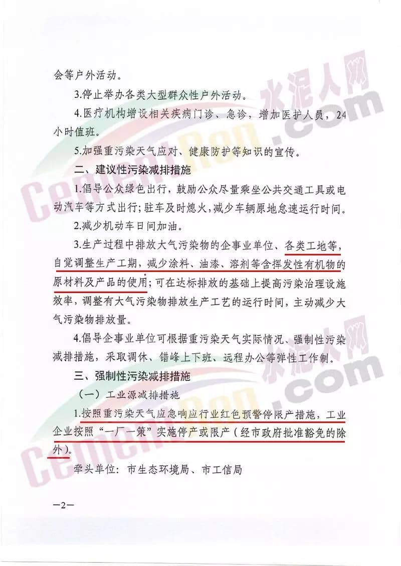 1 按照重污染天氣應(yīng)急響應(yīng)行業(yè)紅色預(yù)警停限產(chǎn)措施,工業(yè)企業(yè)按照“一廠一策”實(shí)施停限產(chǎn)(經(jīng)市政府批準(zhǔn)豁免的除外)。