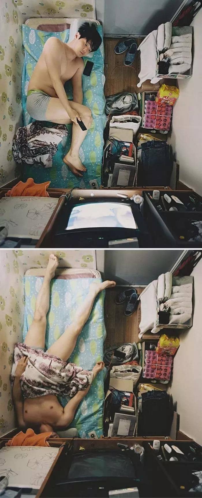 你見(jiàn)過(guò)凌晨1點(diǎn)的廉價(jià)群租房嗎?韓國(guó)有位攝影師,為了記錄底層人民的生活,在廉租房生活了3年。他說(shuō),生活在那里的人,都很壓抑。房間里,通常有一張床,一張桌子,和一個(gè)壁櫥。1米的小床,已經(jīng)占了近一半的空間,卻讓人連腿也無(wú)法伸直。