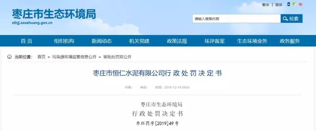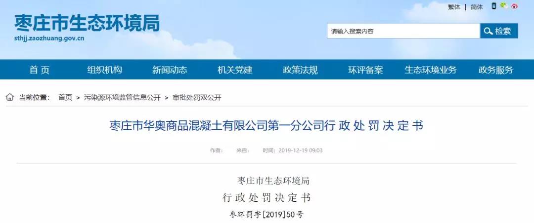 日前,棗莊市生態(tài)環(huán)境局發(fā)布了多份行政處罰決定書,其中有山東泉興中聯(lián)水泥有限公司、棗莊市恒仁水泥有限公司、棗莊市華奧商品混凝土有限公司等8家企業(yè)因環(huán)境污染被處罰,累計(jì)罰款共81.5萬元。