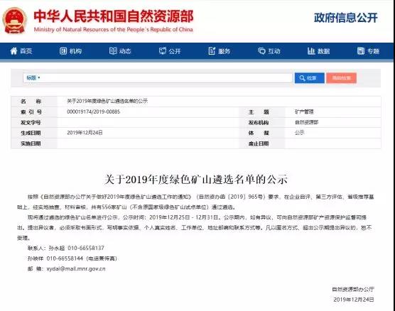 日前,國家自然資源部發(fā)布《關(guān)于2019年度綠色礦山遴選名單的公示》稱:按照《自然資源部辦公廳關(guān)于做好2019年度綠色礦山遴選工作的通知》(自然資辦函〔2019〕965號)要求,在企業(yè)自評、第三方評估、省級推薦基礎(chǔ)上,經(jīng)實地抽查、材料審核,共有556家礦山(不含原國家級綠色礦山試點單位)通過遴選。并將通過遴選的綠色礦山名單進行公示,公示時間:2019年12月25日-12月31日。公示原文如下: