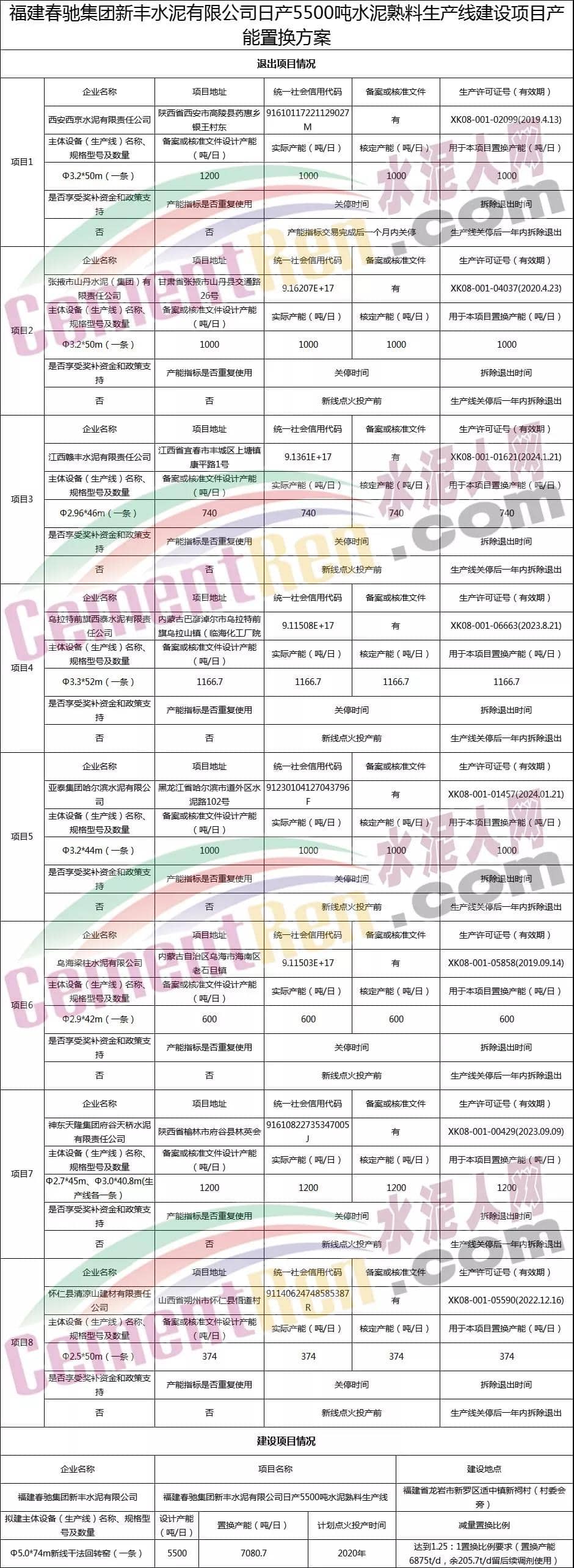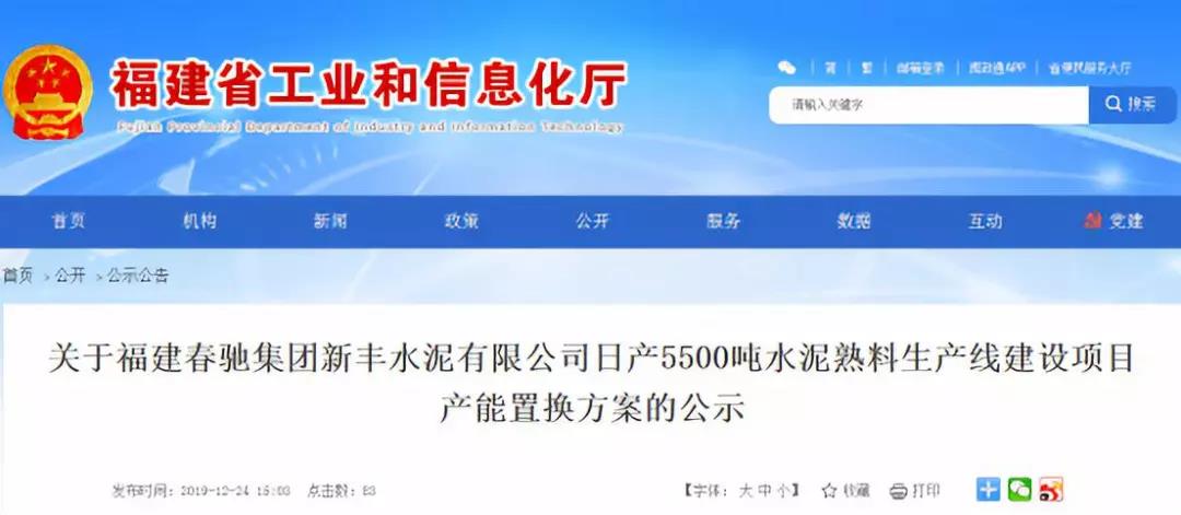 12月24日,福建省工業(yè)信息化廳發(fā)布了《關(guān)于福建春馳集團新豐水泥有限公司日產(chǎn)5500噸水泥熟料生產(chǎn)線建設(shè)項目產(chǎn)能置換方案的公示》,原文如下: