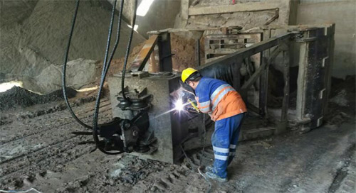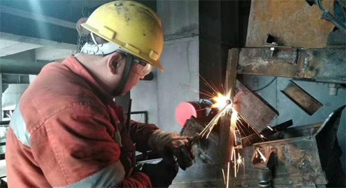 打那以后,每次到現(xiàn)場巡視,總能看見維修班的人在忙碌。路上相遇時(shí),他們肩扛手提,有時(shí)還推著焊機(jī)、氧氣瓶等物,微信群里也常見他們在庫頂處理斜槽、天車上處理故障、在地上換斗提、焊管道的照片。給人的感覺,這是一個(gè)肯吃苦,能打硬仗的隊(duì)伍。