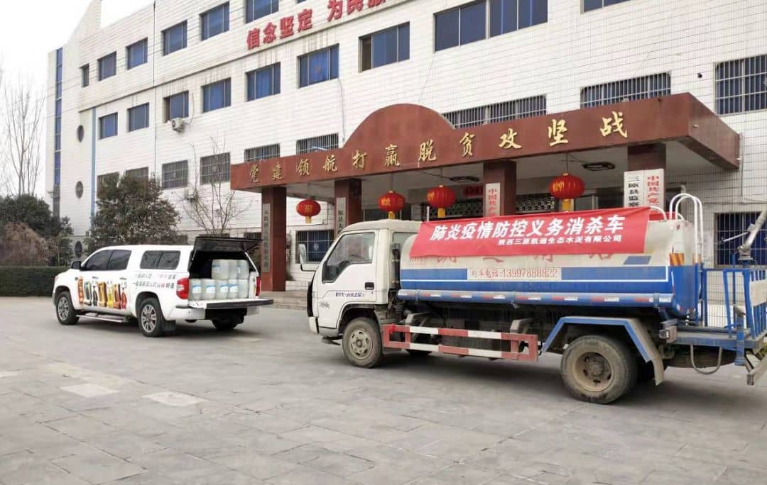 在耀縣水泥廠的影響下,不僅企業(yè)員工積極投入抗疫戰(zhàn)斗,其“秦嶺”牌水泥授權(quán)水泥企業(yè)亦自發(fā)行動為周邊社區(qū)、村莊義務(wù)噴灑消毒水。