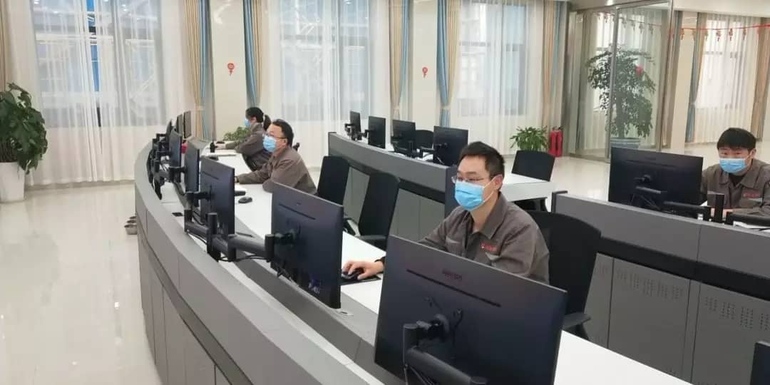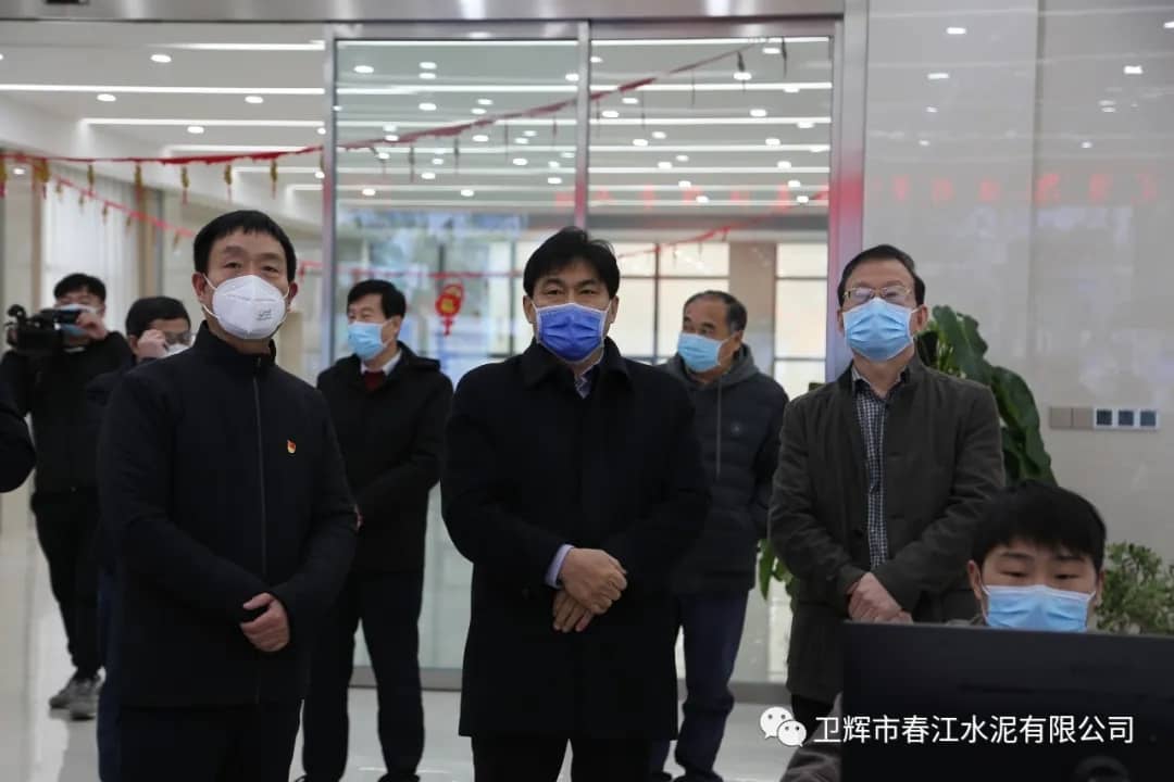 ▲新鄉(xiāng)市委書記張國偉一行在水泥公司中控室聽取裴春亮書記復(fù)工復(fù)產(chǎn)情況匯報